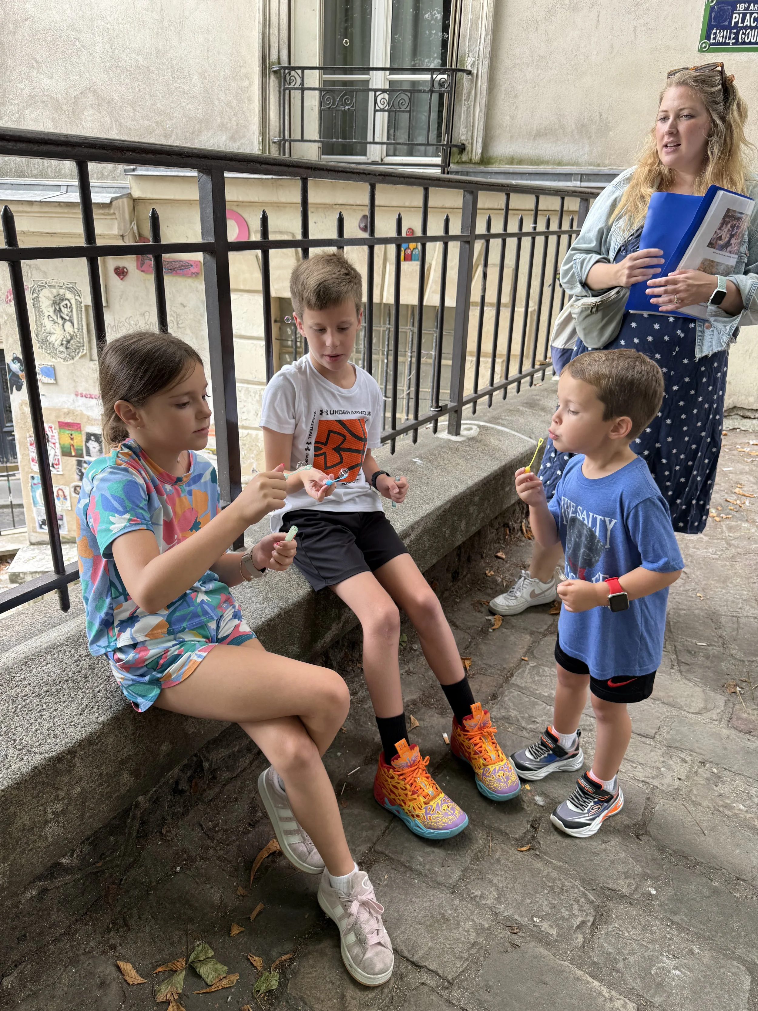 Mandie also introduced us to Flash Invaders, a fun game that our kids loved. A street artist in Paris puts mosaics in inconspicuous places all over the city, and when you find one, you scan it with an app. It tells you the name of the mosaic and gives you points, which vary based on how hidden the mosaic is. It was a fun way to keep the kids engaged during our walks around the city.