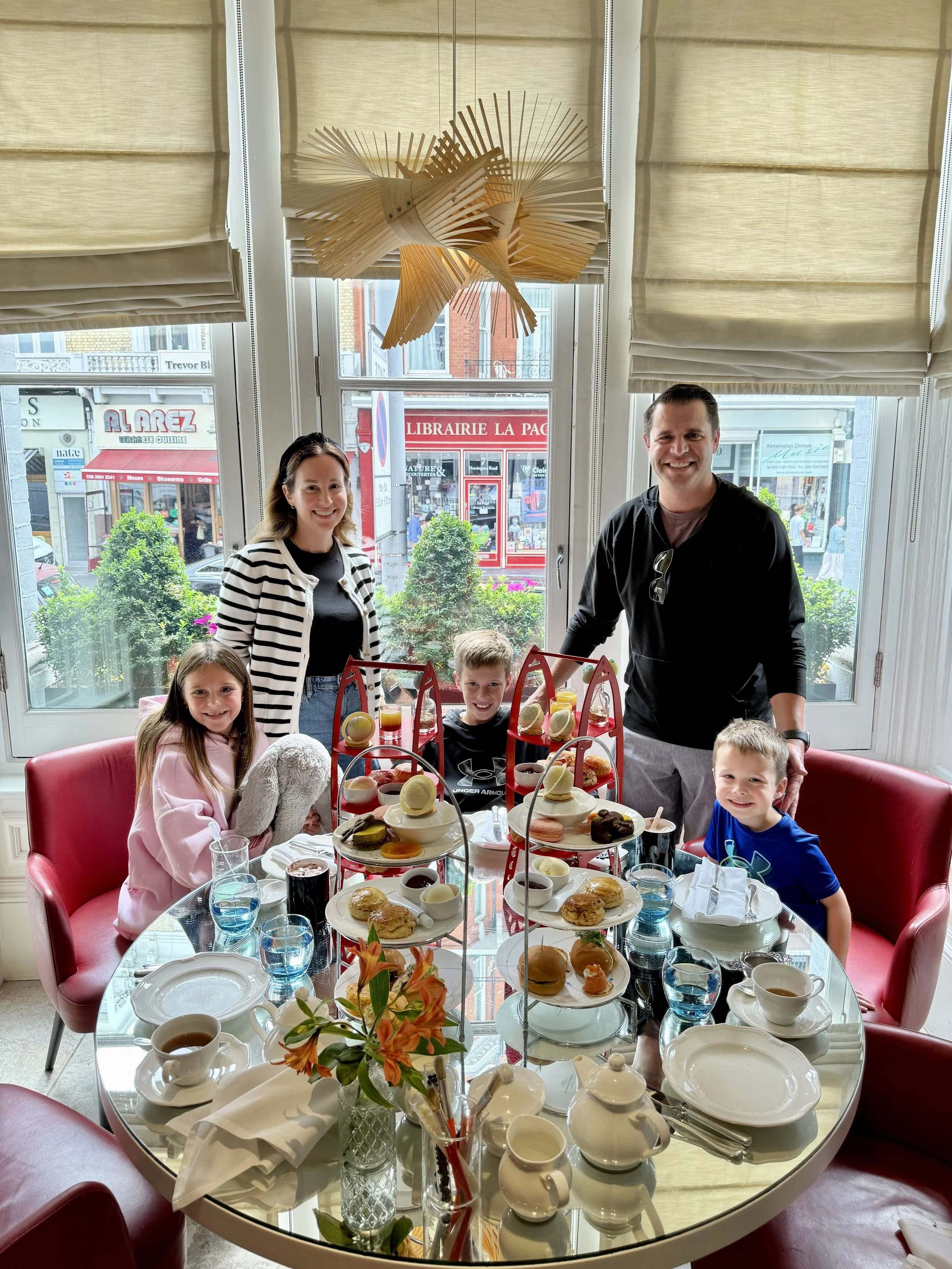 Later, we headed to lunch at the Ampersand Hotel for a whimsical Science Afternoon Tea. This was pricey, but so much fun. I wanted us to have a true afternoon tea experience in London, and this one fit the bill. It provided the traditional tea for Mark and me, plus a fun kids’ version that included crafting their own lemonade, creating their own hot chocolate with mix-ins, and even included some dry ice for a fun foggy effect. The kids didn’t love all the food, but they at least tried everything!