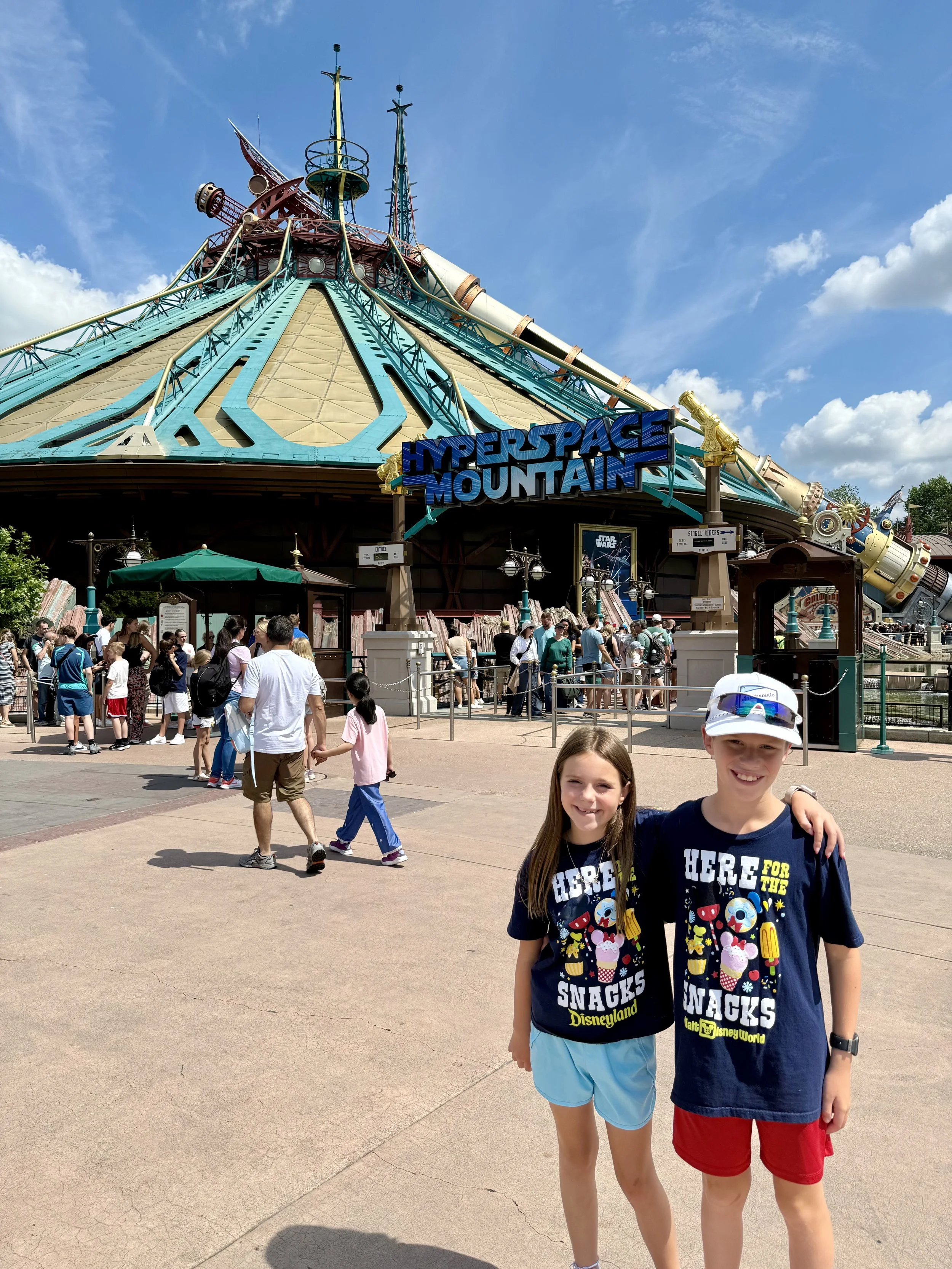 While in Disneyland Paris, we prioritized rides that we don’t have in Disney World in Florida. Louie hit Cars Land pretty hard (no surprise), while the other two loved the intense roller coaster called Star Wars Hyperspace Mountain (which they rode with Mark). We also visited Cafe Hyperion for lunch and caught a show where singers sang Disney classics in both English and French. Too cute. We couldn’t leave without visiting the World of Disney aka the huge souvenir shop between the two parks. We made sure to grab some Mickey ears and t-shirts that were Paris-themed.