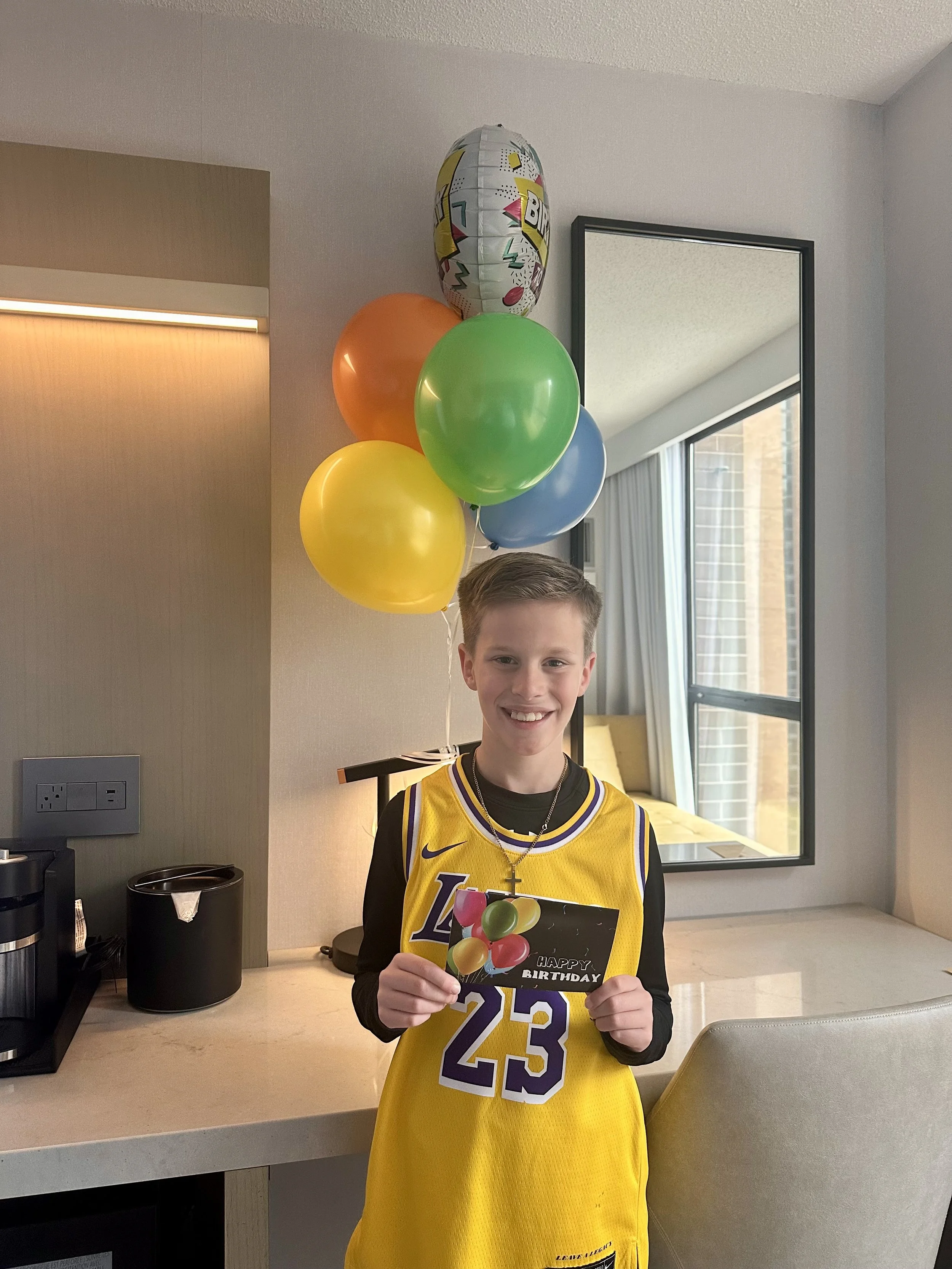 Before they arrived, I emailed the hotel a couple of hours ahead of time to let them know it was Henry’s birthday celebration trip - and they went above and beyond considering I gave them absolutely no notice (oops). When the guys walked into the room, they were surprised with balloons and a birthday card waiting for Henry. Hyatt really knows how to make moments feel special!